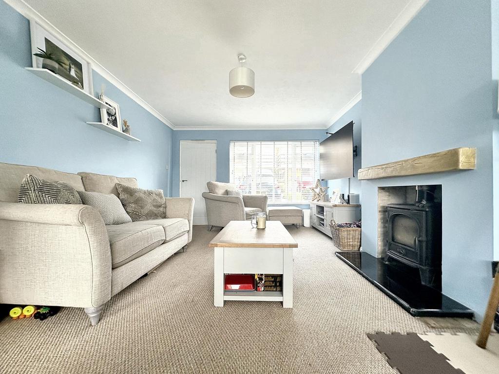 Stepping into the property, the focal point is the spacious through Lounge/Dining Room that overlooks the gardens, creating a delightful setting for relaxation or entertaining guests. The lounge has a sunny dual aspect and a fireplace with a log burner. The heart of the home, the refitted Kitchen, showcases a modern grey shaker style with attractive worktops and extra features such as curved ends and brass handles. A large window allows lots of light and views over the rear garden.