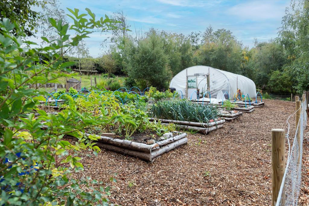 Additional outdoor features include a productive vegetable garden with raised beds, a polytunnel, small orchard, and a number of peaceful seating areas.