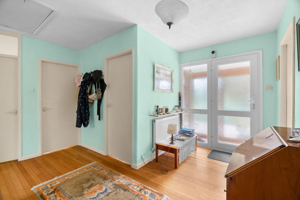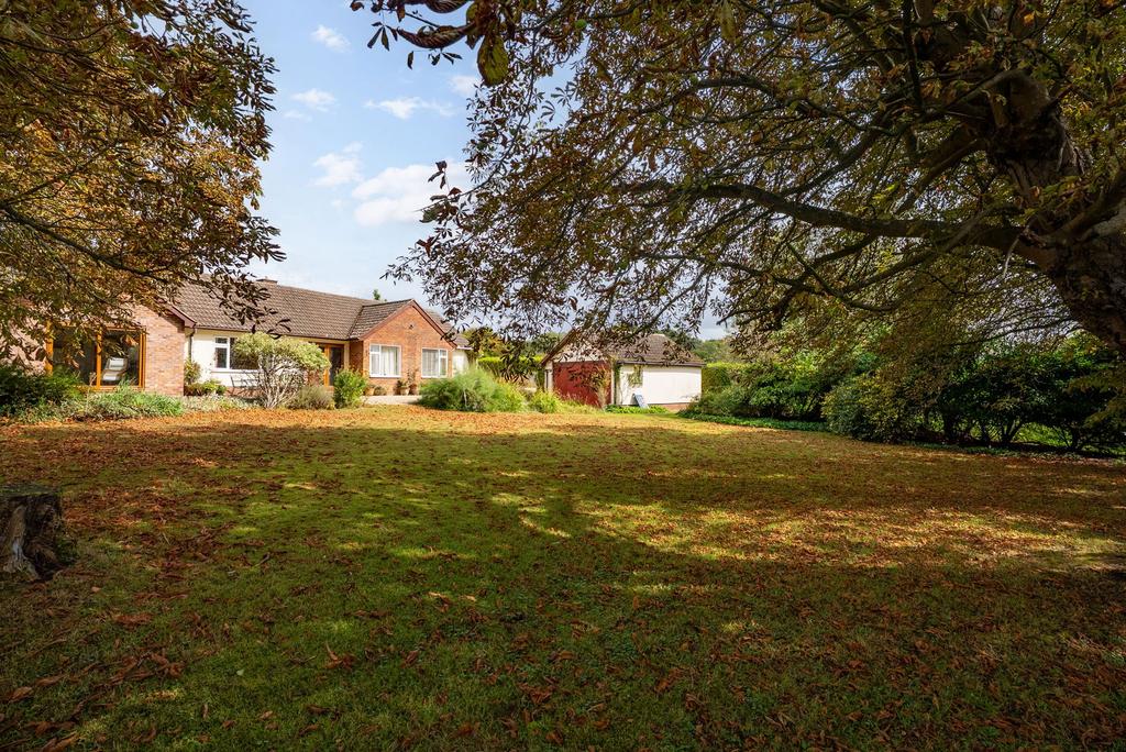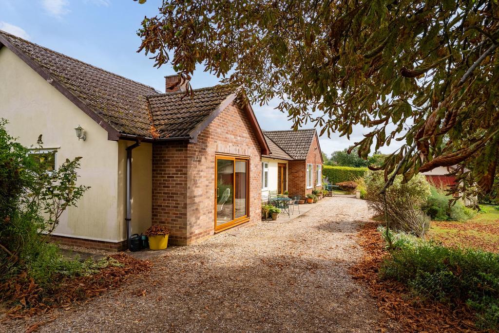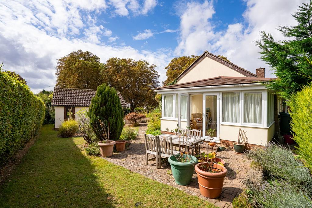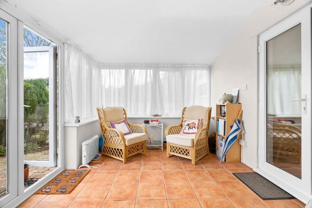 The accommodation extends to nearly 1,800 sq ft and flows with an ease that suits both family life and entertaining. At its heart, the main sitting room is a bright and welcoming space, with wide sliding doors that frame views across the garden and create a seamless link to the terrace beyond. A second reception room provides further versatility, whether as a snug, dining room or playroom, while a conservatory to the rear makes the most of the garden outlook all year round. The kitchen is well-appointed with good storage, ample worktop space and a breakfast bar for casual dining. It opens directly to the gardens, reinforcing the easy indoor–outdoor lifestyle that the property offers. The bungalow provides four bedrooms in total — three comfortable doubles and a further single.