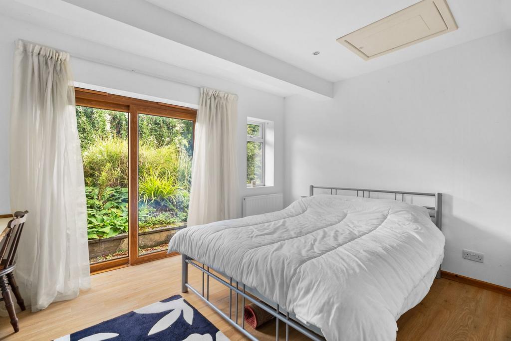 The principal bedroom is generously proportioned and enjoys a light-filled aspect, while bedroom two benefits from sliding doors leading directly onto the garden, creating the feel of a private retreat. The additional bedrooms offer flexibility for family members, guests or as a dedicated study. These are served by a family bathroom, additional shower room and separate cloakroom, providing excellent practicality.