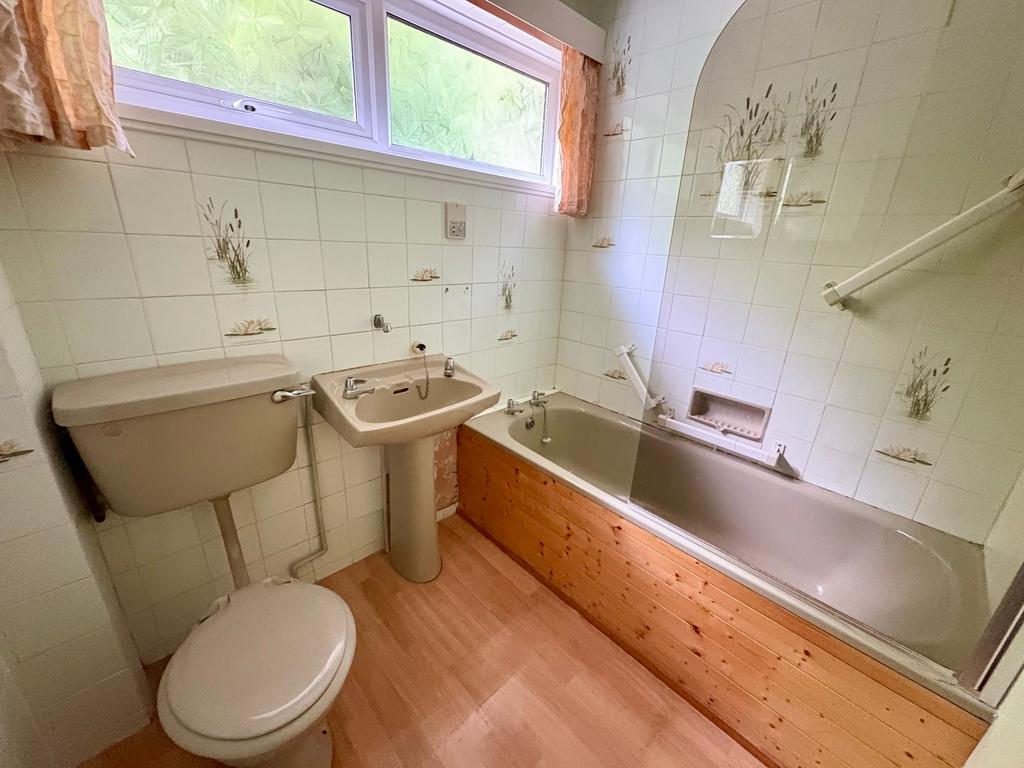 From the sitting room a door opens to the INNER HALL with loft access hatch and storage cupboard housing the warm air heating boiler. BEDROOM 1 with built-in storage and window to the front enjoying the open views towards the sea at Lyme Bay. BEDROOM 2 with wash basin and window to the rear. BATHROOM with coloured suite of panelled bath with shower over, wash basin and WC. Tiling to walls and high level obscure glazed window. From the kitchen there is access to a lobby with door to the rear garden and door to the SHOWER ROOM with shower cubicle, wash basin and WC. Extractor fan and cupboard housing the gas meter.