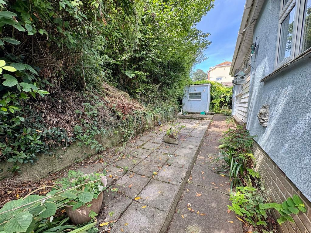 To the rear of the bungalow is a patio area, laid to slabs with mature trees and shrubbery border. There is a store room with window which has previously been used as a small office. To the front is a sloping paved garden with shrubbery. Off Golden Park Avenue is a GARAGE in a block, No.22, with up and over door and parking space in front.
