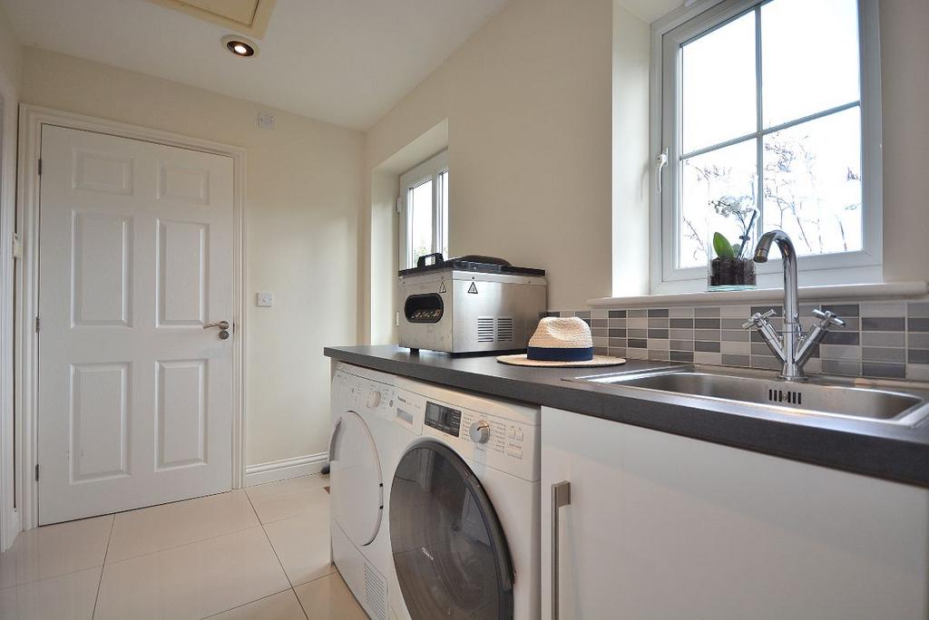 A well placed utility with plenty of storage with additional cloak style cupboard. Base unit with working surface with inset sink and chrome mixer tap. There is also plumbing for a washing machine and space for a tumble dryer and a double glazed window and door to the front elevation.