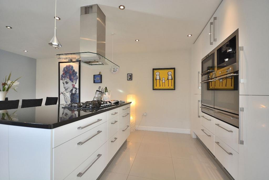A stunning open plan dining kitchen which is the real hub of the home. The initial build was solely centred around the large kitchen island making this a perfect space for those who love cooking and entertaining. There is an array of full height wall units, base units all with inset drawers with premium grade imported black African granite working surfaces. There is a whole host of integrated appliances including: Fridge/freezer, dishwasher, two full size double ovens, two warming drawers, microwave and coffee machine. There is also five ring gas hob and ceiling set low decibel Italian extractor over. There is also a tiled floor with underfloor heating, ceiling spotlights and additional lighting including plinth, glass cupboard and shelve lighting, array of power points including a double socket within the island and double glazed windows again enjoying that southerly aspect keeping a wonderful amount of natural light to pour into the room.