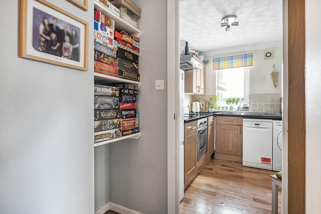 Stepping into the apartment, the entrance hall immediately sets the tone with its sense of space and practicality. Two useful storage cupboards and a recessed shelving area provide room to keep belongings neatly tucked away, while still leaving the hall open and welcoming.
