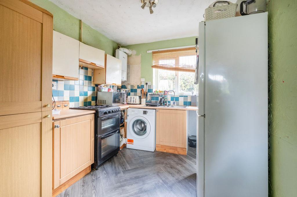Inside, the home features a welcoming hallway leading into a spacious lounge, ideal for relaxing or entertaining. The lounge flows naturally into the kitchen, which overlooks the rear garden and offers a range of units, ample work surfaces, and space for appliances.