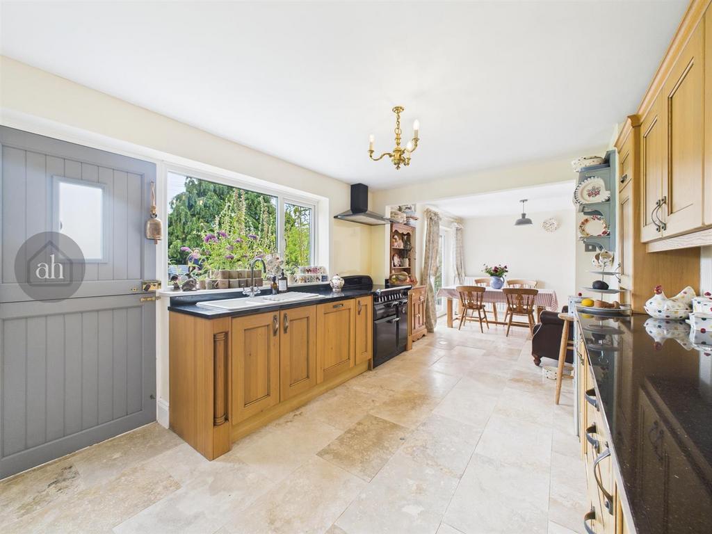 Kitchen/Dining Room - 25' 9'' x 8' 10'' (7.86m x 2.70m) - 25'9" x 10'7" Stable door to rear garden. Range of fitted wall and base level units with Granite work surface over, built in pantry cupboard, inset one and a half bowl sink unit, space for Range style cooker with built in extractor hood, built in fridge and freezer and dishwasher. Travertine flooring, sliding door to rear garden, window to rear.