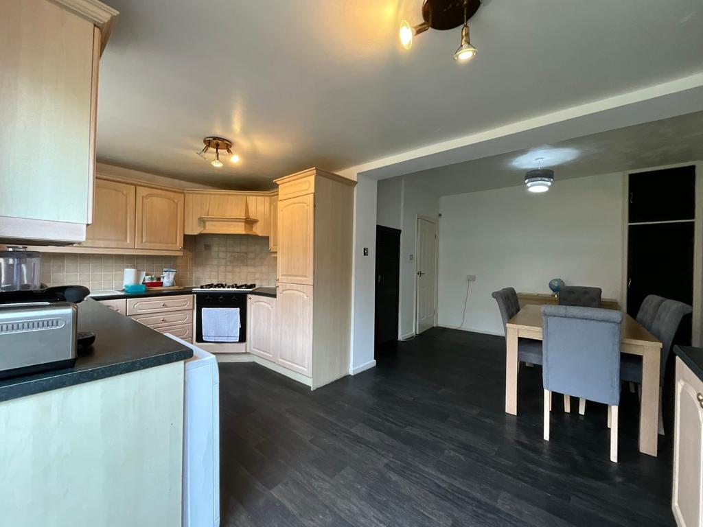 Features: UPVC double glazed window, radiator, range of wall and floor units, contrasting work surfaces, oven, hob, extractor hood, integrated fridge/freezer, plumbing for washing machine, sink with mixer tap and drainer, splash back tiles, storage cupboard, patio doors to rear.