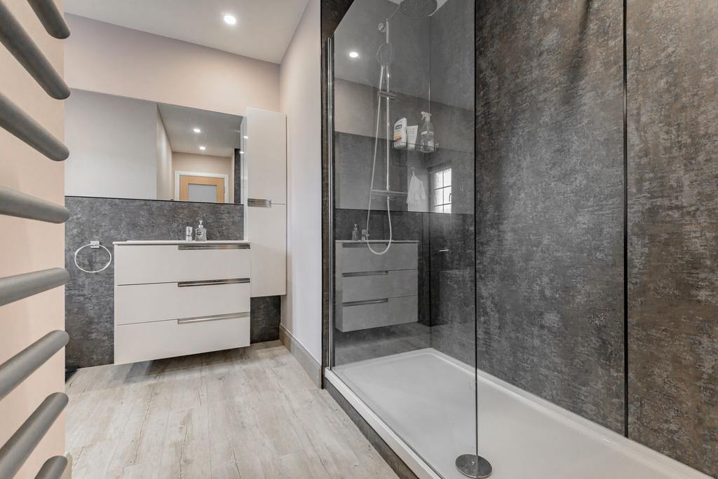 Upstairs, the bedrooms include a master suite with built-in wardrobes and en-suite shower room, while the family bathroom is fitted with a walk-in shower and bath.