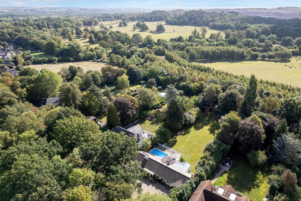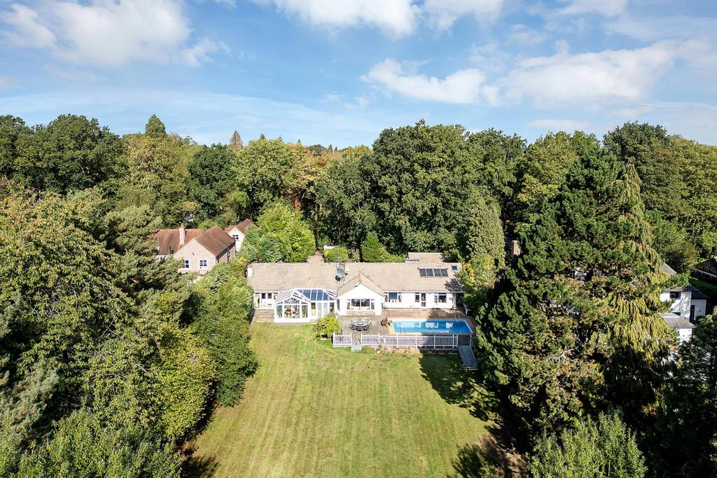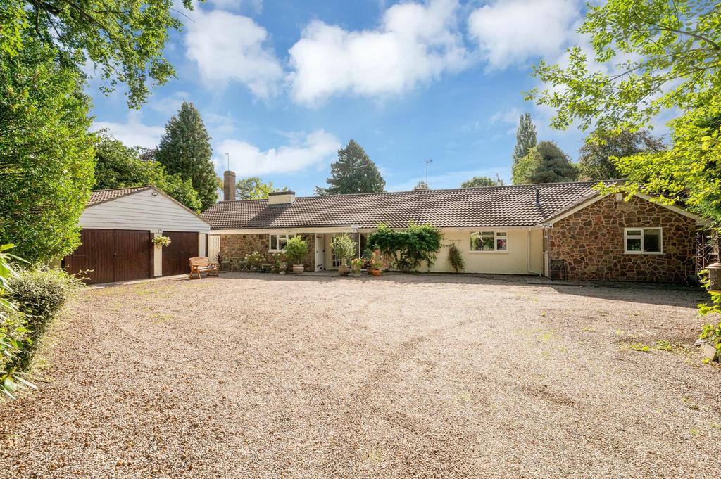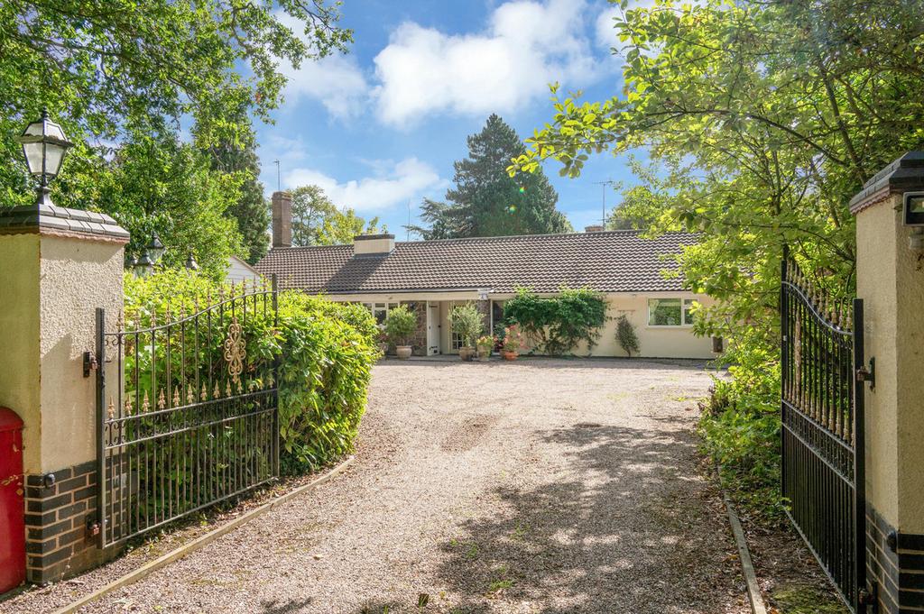 Standing in 1.2 acres and with a private south facing garden this large, single-storey home behind electric gates offers total privacy from the world outside. This rare home with five bedrooms has a surprisingly rural feel just a short stroll from the village centre which boasts an unrivalled host of amenities including coffee shops, pubs and restaurants. With just under 3000 sq ft of accommodation this rare family home features a large south facing sitting room, conservatory, study, kitchen diner, utility and two bathroom/shower rooms. A long, gravel driveway with electric gates leads to a detached double garage and an outdoor heated pool is a particular feature of the rear garden which is flanked by mature woodland. With extensive scope for renovation or extension (subject to planning permission), Woodstock represents a truly unique opportunity to craft a bespoke family home in one of the area’s most desirable and picturesque locations.