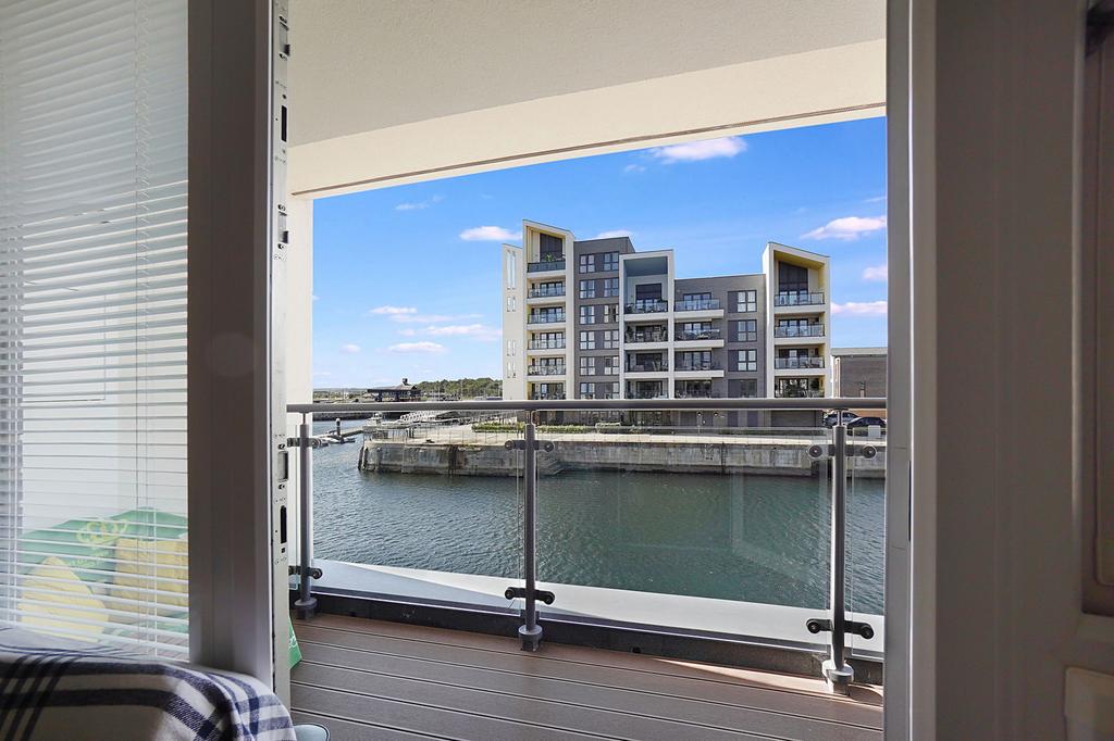 The true highlight, however, is the west-facing balcony. Spacious enough to dine or unwind, it offers uninterrupted water views and the perfect front-row seat to some of the most spectacular sunsets. This private outdoor space brings a sense of calm that is hard to find, inviting you to start your mornings with coffee in the sunshine and end your days with a glass of wine as the sky glows above the water.