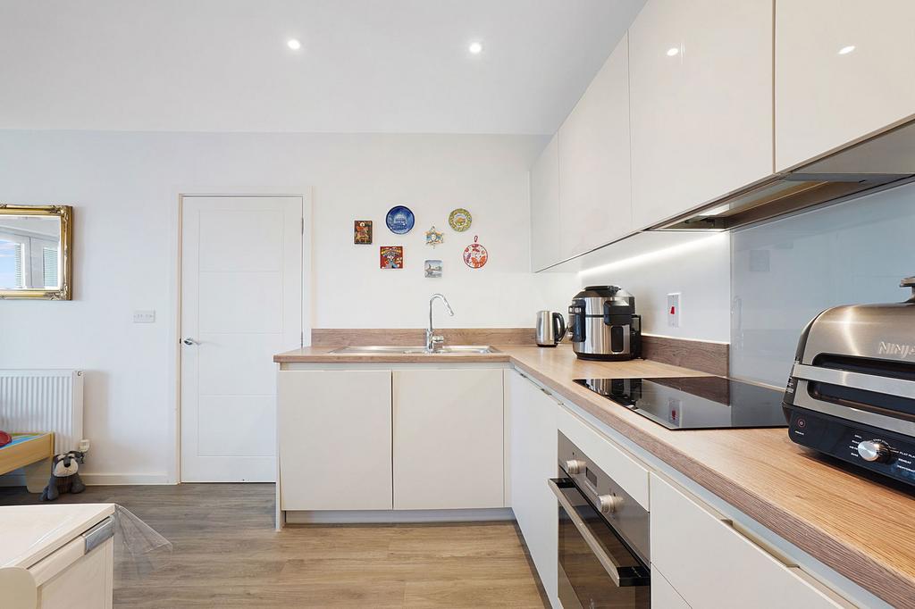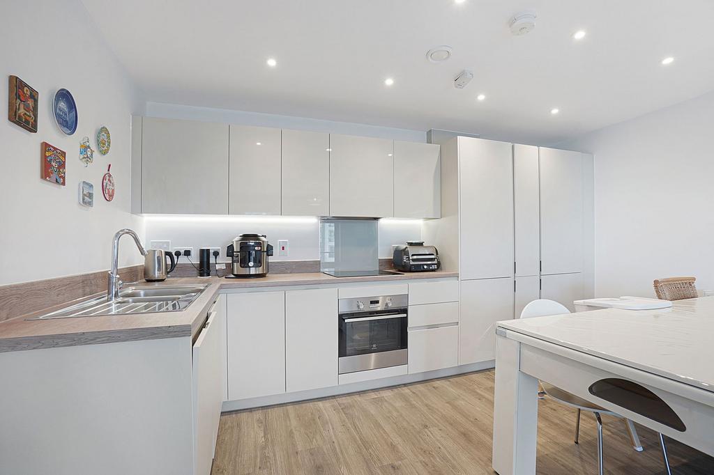 Built in 2019 and still benefiting from four years of NHBC warranty, the apartment has been carefully maintained by its current owner. From the moment you step inside, you are welcomed by an open plan kitchen, lounge and dining area that has been designed with both style and practicality in mind. The kitchen is fully integrated with high-quality appliances, creating a seamless space that’s perfect for relaxed evenings at home or entertaining friends.