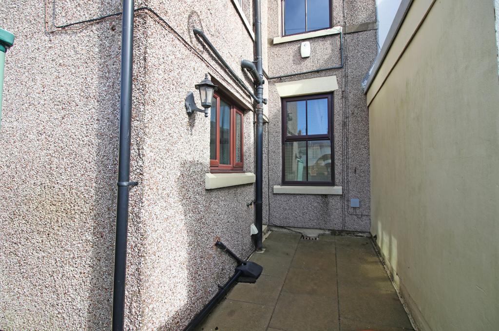 Modern fitted kitchen offering a range of wall mounted and base units with generous laminate work surface area. Integrated oven and hob with extractor fan over. Plumbed for washing machine, space for upright fridge freezer, UPVC door to the rear walled garden area and door to cellar rooms.