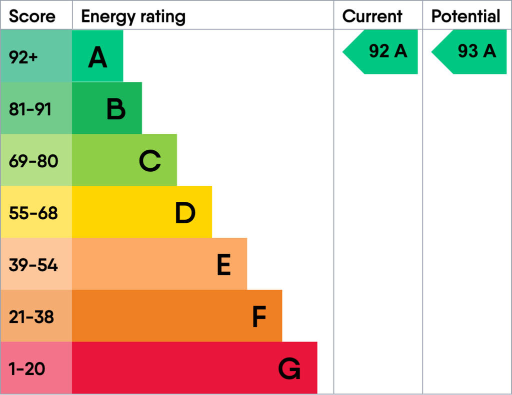 Outside, the rear garden is a peaceful and low-maintenance space with a paved patio, raised planters, and plenty of room for outdoor furniture, ideal for enjoying the afternoon sun thanks to its south-west facing position. To the front, the property offers a private driveway for two vehicles and a good-sized garage with an electric door, providing additional storage or workshop potential. Fitted with solar panels, this home receives regular quarterly payments via the feed-in tariff and boasts an A-rated EPC.