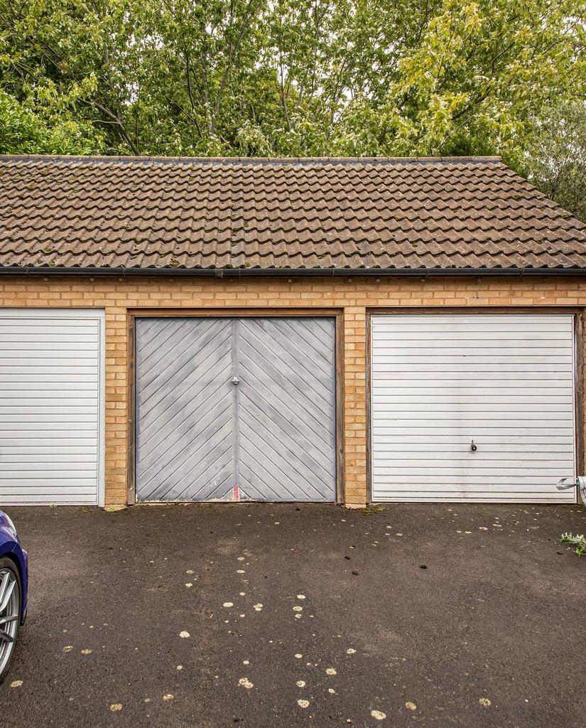 Garage: Brick built single garage with metal up and over door to front. Pitched roof.