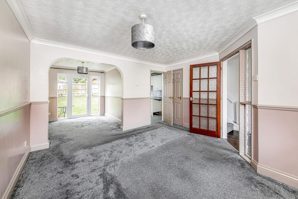 Living/dining room: Feature box bay window to front aspect. Useful understairs storage. Double glazed door giving access to the garden.