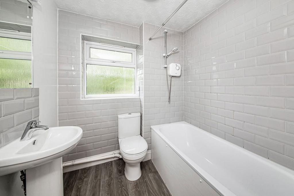Bathroom: White suite comprising of panelled bath with electric shower over, pedestal handbasin and low level WC. Complementary tiling to splashback areas. Shaver socket and light.