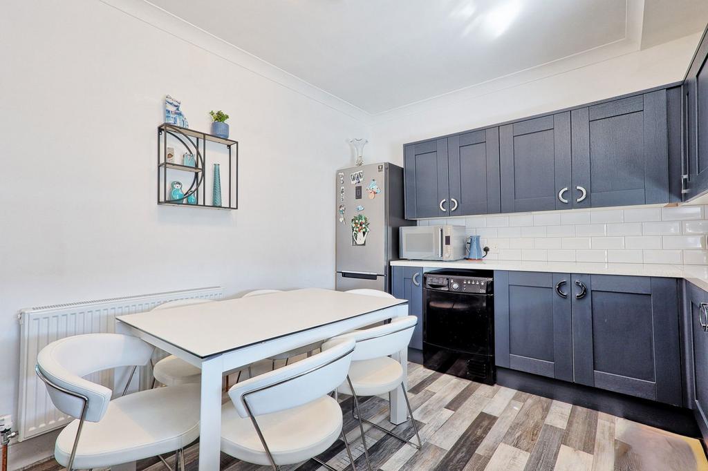 Outside, the home benefits from a low-maintenance yet attractive rear garden and a garage located at the back of the property. A notable advantage is the inclusion of a 50% share of the building’s freehold.