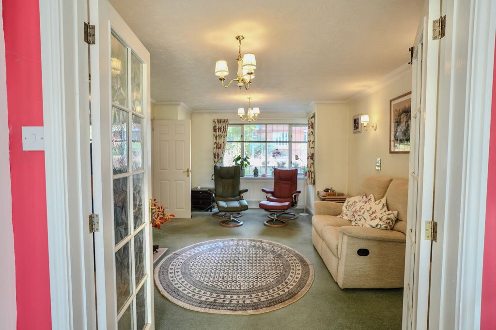 Double glazed box bay style window to the front aspect, carpeted flooring, wall mounted radiator, wall lights, Sky TV point, TV aerial point, gas fire with surround and glazed double opening doors to the dining room.