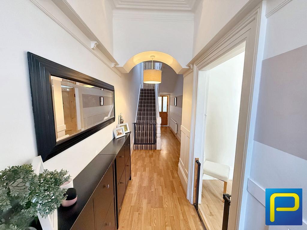 This stunning home combines traditional charm with modern living, featuring spacious, light-filled rooms throughout. The welcoming entrance hall leads to an impressive living room with a bay window, high ceilings, and a log burning stove, perfect for relaxing evenings. The elegant dining room overlooks the rear courtyard and boasts a decorative fireplace with an electric stove-effect fire.