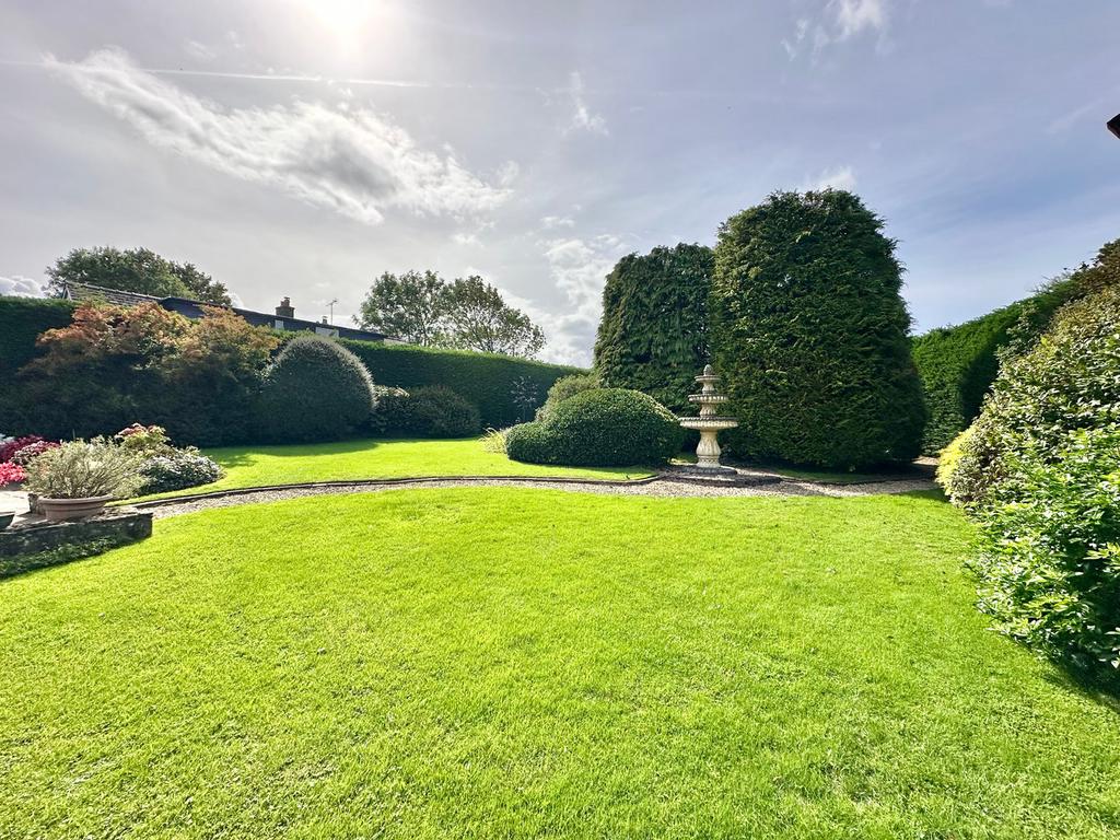 Located on a private cul-de-sac the property is approached at the front elevation via a dropped curb which leads onto a large tarmacadamed driveway that would accommodate 5 plus vehicles. The front garden is elevated and has a well maintained large lawned area with shrubs, trees and flowers creating privacy and with the boundary having a retaining wall with steps leading to the front approach. There is an outdoor, tap, lighting, power and an outdoor electric stairlift leading to the upper level of the property. Directly off the conservatory there is a patio area, and the rear garden faces west, where there is multiple seating areas, and there is a stone path with brick paving either side creating a pathway from the front to the rear of the garden. Tall hedging creates privacy, timber constructed single glazed summer house on a concrete base, and from here there is multiple shrubbery, flowerbeds, either side of a lawned area and from here it leads to an outbuilding. The path contin...