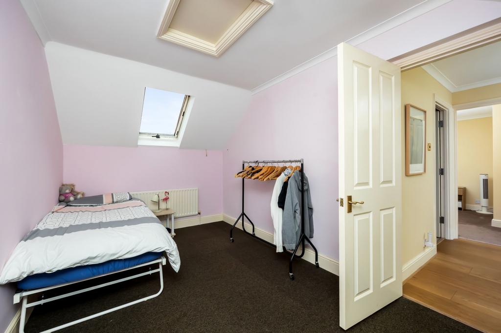 The second floor houses another fantastically proportioned room, easily accommodating a king size bed and furniture, with Velux windows flooding the room with light, and ample eaves storage.