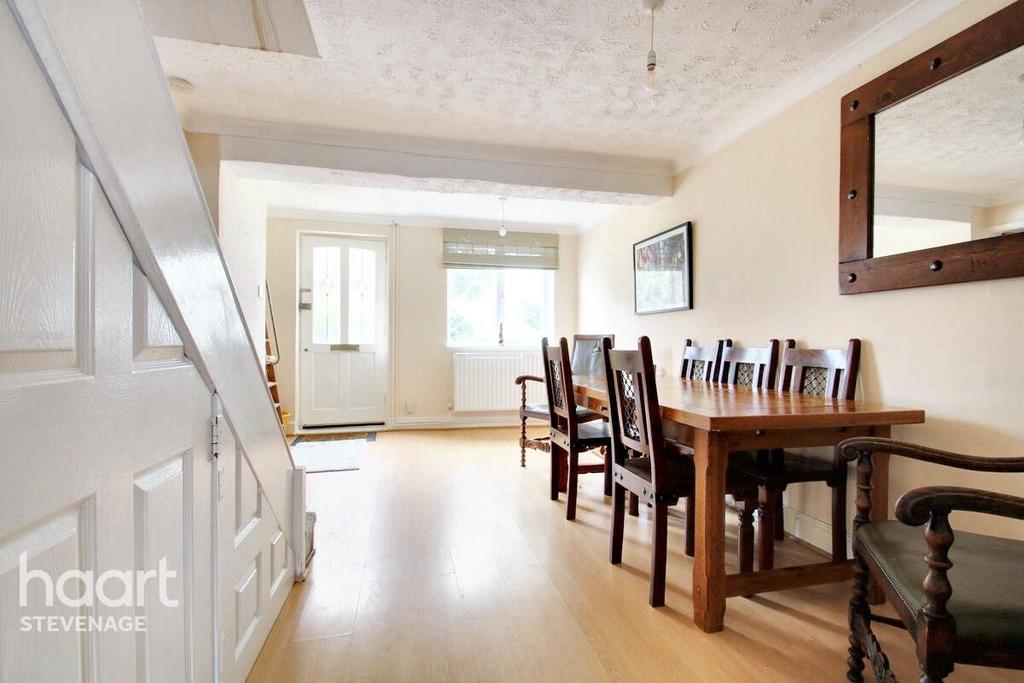 With front aspect double glazed window, wood effect laminate flooring, stairs leading to the first floor, under stairs storage cupboard, two radiators, door through to the kitchen/breakfast room and door through to: