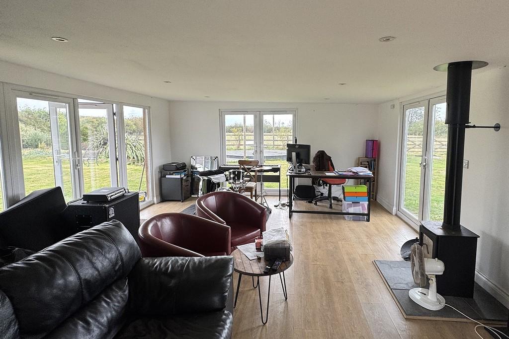 GARDEN ROOM 15' 7" x 21' 7" (4.75m x 6.58m) This fully insulated timber garden office offers a peaceful retreat or working space. Having a multi-fuel log burner ensuring comfort throughout the seasons, TV aerial point, internet connection, LED lighting and laminate wood flooring throughout for easy maintenance.