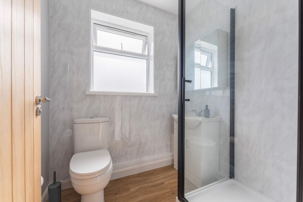 The bungalow also boasts two beautifully finished bathrooms: a sleek shower room with rainfall and handheld options, and a separate family bathroom complete with modern vanity storage and quality fittings.
