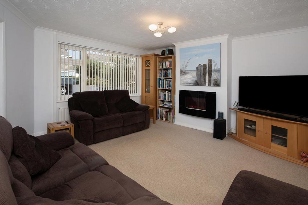 SITTING ROOM with Upvc double glazed window to front, radiator, power points, television aerial connection point, feature electric fire to chimney breast, useful under stairs storage cupboard also housing electric meter, square arch through to …
