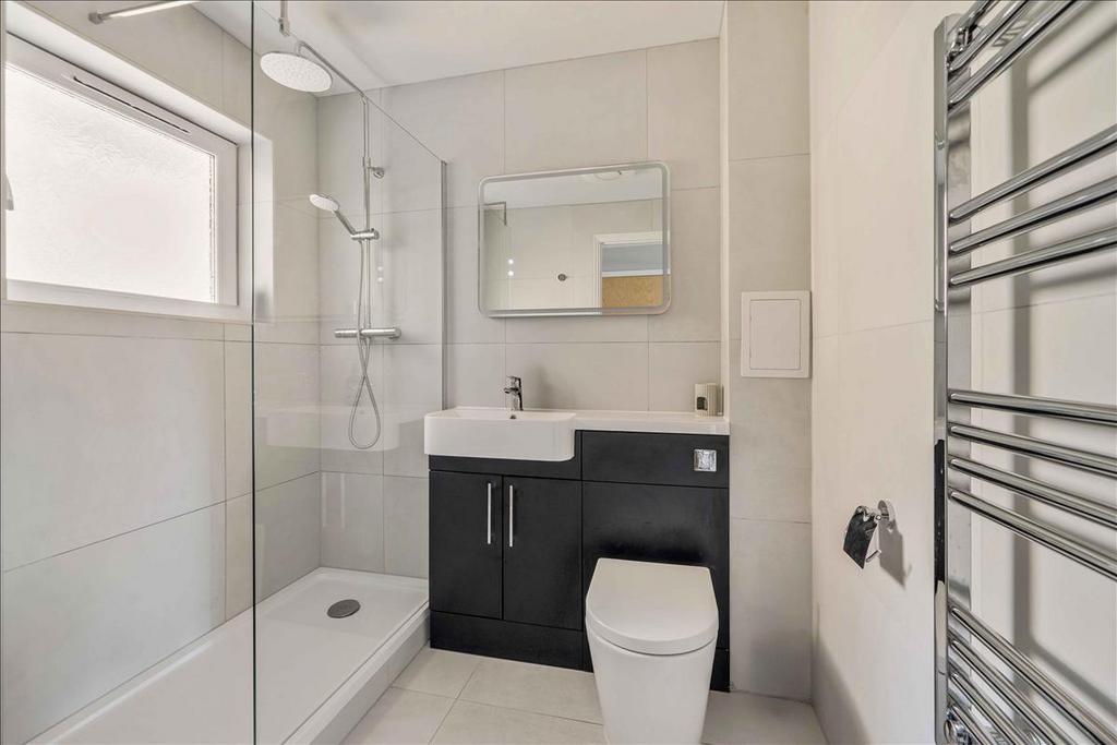 BATHROOM: 6.10 x 5.1 (2.08 x 1.55m), Double glazed frosted window, walk in shower cubicle, low level W.C. and wash hand basin, heated towel rail, fully tiled walls.