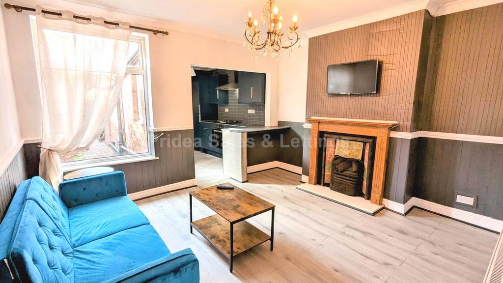 The property opens to two generous reception rooms, providing flexible living and dining areas. To the rear lies a bright, open kitchen complete with integrated fridge-freezer and gas cooker, leading to a stylish new bathroom featuring a large walk-in shower, modern double-sized towel rail and dedicated space for both a washing machine and tumble dryer.