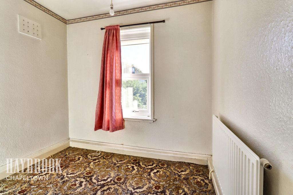 This inviting bedroom features a front-facing window that fills the space with natural light and offers views of the surrounding street. A radiator ensures warmth and comfort, while the soft carpet underfoot adds a cosy, homely feel. Perfect for investors, this room contributes to a property with strong rental potential and a blank canvass for first time buyers.