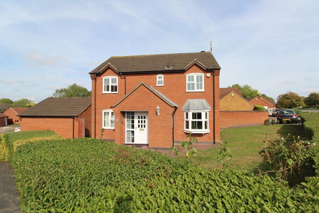Four bedroom detached property on a great plot on the popular pastures estate in Narborough. Owned since new this is a great opportunity to acquire a well loved home in an enviable position, offering scope for further extension and improvement subject to the necessary permission. Viewing comes highly recommended to appreciate. In brief the property comprises of entrance hall, downstairs cloaks/wc, 19ft living room with double doors leading out to the rear garden, separate dining room, rear 17ft breakfast kitchen fitted with a range of base and wall units and rear access door. To the first floor the landing leads to the four generous bedrooms and a family bathroom. The principal bedroom has fitted robes and an en suite shower room/wc. The property further benefits from gas fired central heating and double glazing. Externally the property proudly sits between Snowdrop Close and Hardwicke Road. To the front is a lawn area with hedge surround and block pathway leading to the rear and side. The rear garden is a good size and has a lawn, patio and wall/fence surround. There is access to the rear double garage with side door to the garden and two front up/over doors fronting Snowdrop Close, there is a generous block pave driveway providing ample car standing and further lawn area. The property does require some cosmetic upgrading but would make an ideal family or professional home. Offered with no onward chain. EPC rating is D and Council tax band is E.