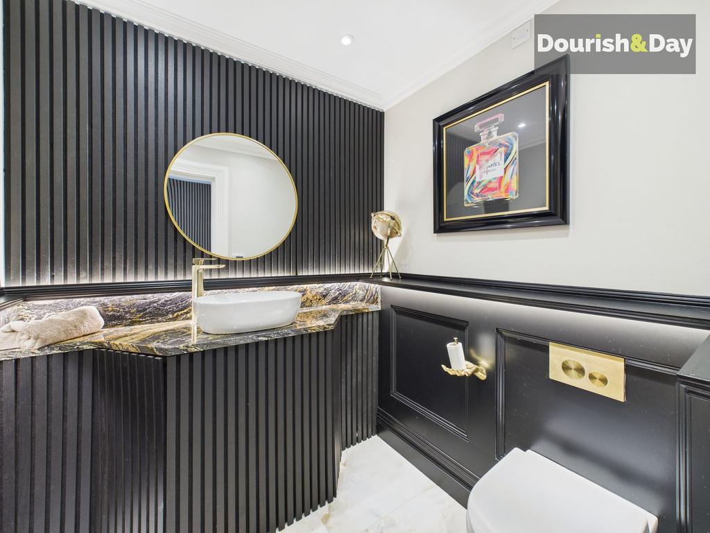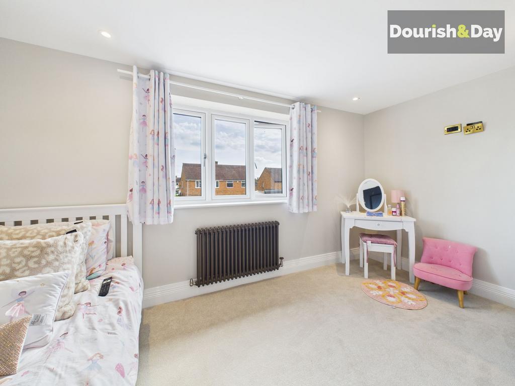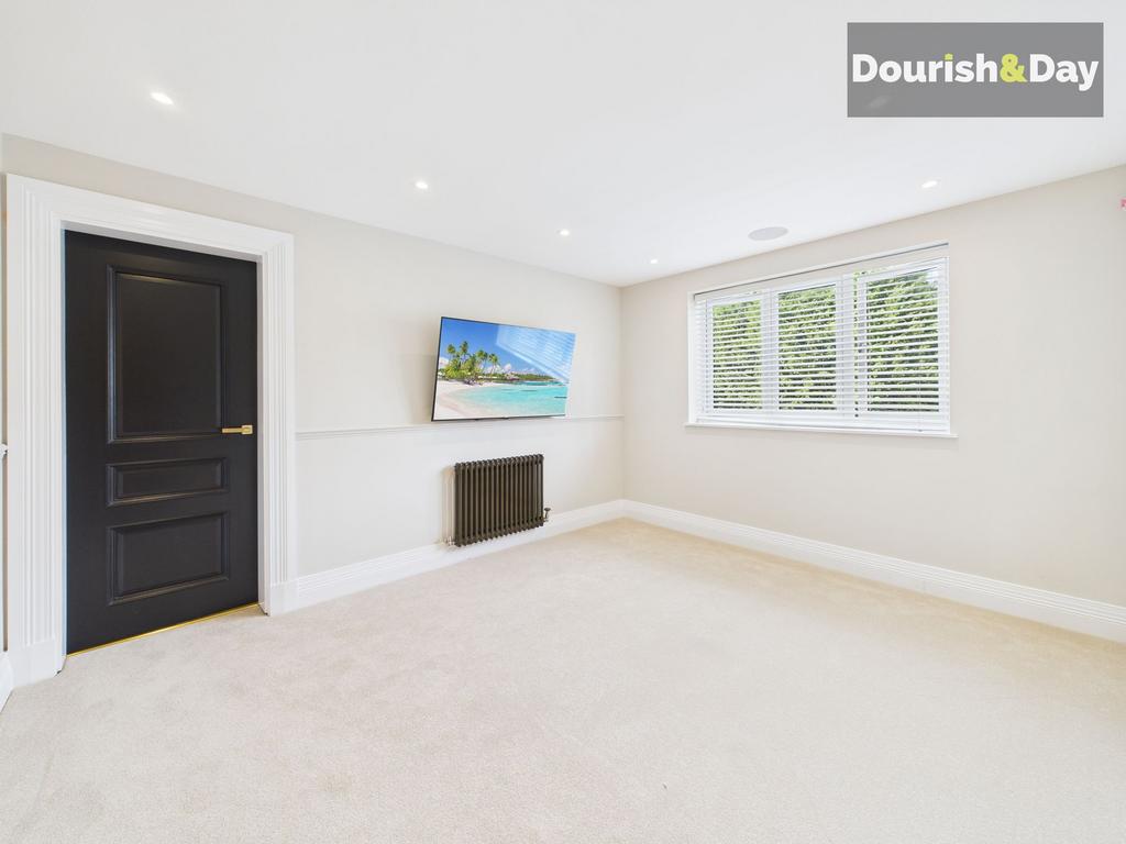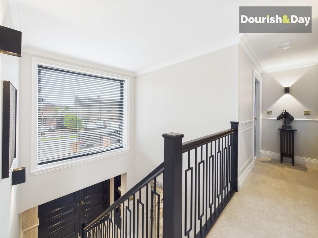 Upstairs, the sense of style and space continues. The landing is a real feature, with a large central window flooding the space with light, alongside a cleverly designed secret storage cupboard. There are four double bedrooms, one currently used as a walk-in wardrobe, a contemporary family bathroom that doubles as an ensuite with a freestanding bath and separate shower cubicle, plus an additional ensuite shower room.