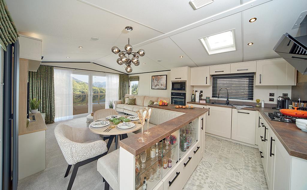 This brand new, modern furnished Carnaby Grantley Lodge (42'x14') luxury lodge is perfect for those looking for a detached, easy to maintain, bungalowstyle property. The lodge has an open plan kitchen, dining and living area, two bedrooms and two bathrooms.