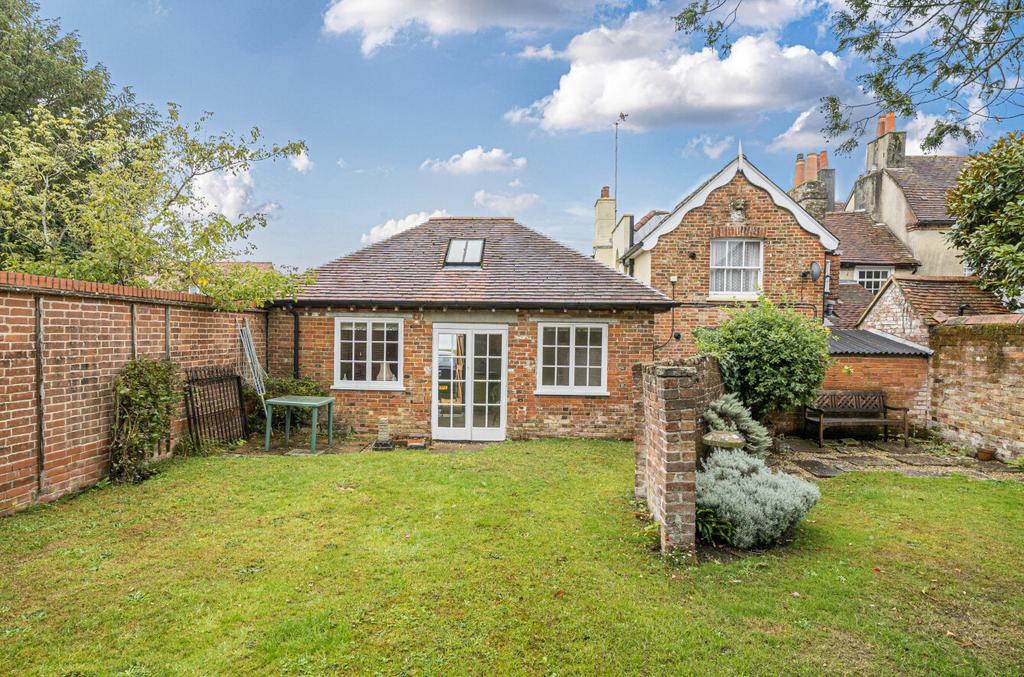 To the rear of the driveway is a converted brick built garage, utilised currently as a studio with the potential for many additional uses, which houses a small kitchen sink and space for a washing machine, shower room and ancillary accommodation. French doors open out to the pretty rear walled garden.