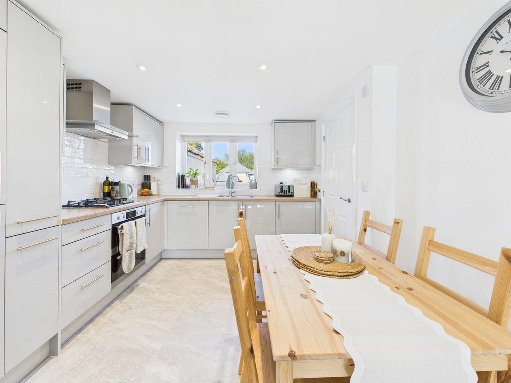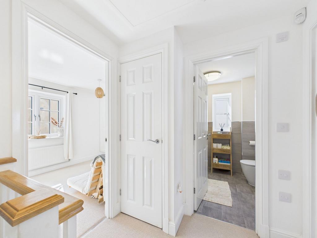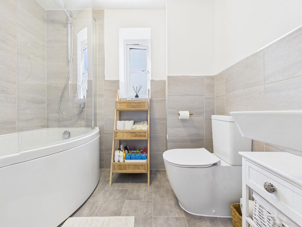 Upstairs, there are two generous double bedrooms. The principal bedroom enjoys its own en-suite, while bedroom two features fitted wardrobes and sits alongside a stylish family bathroom with shower over bath.