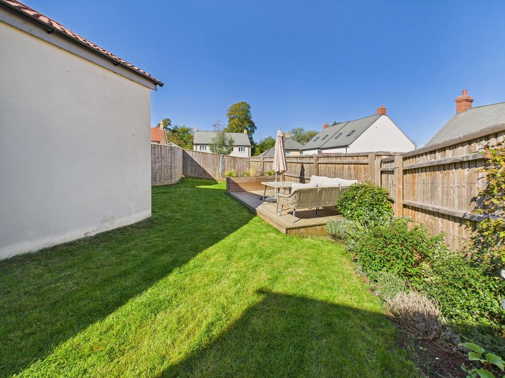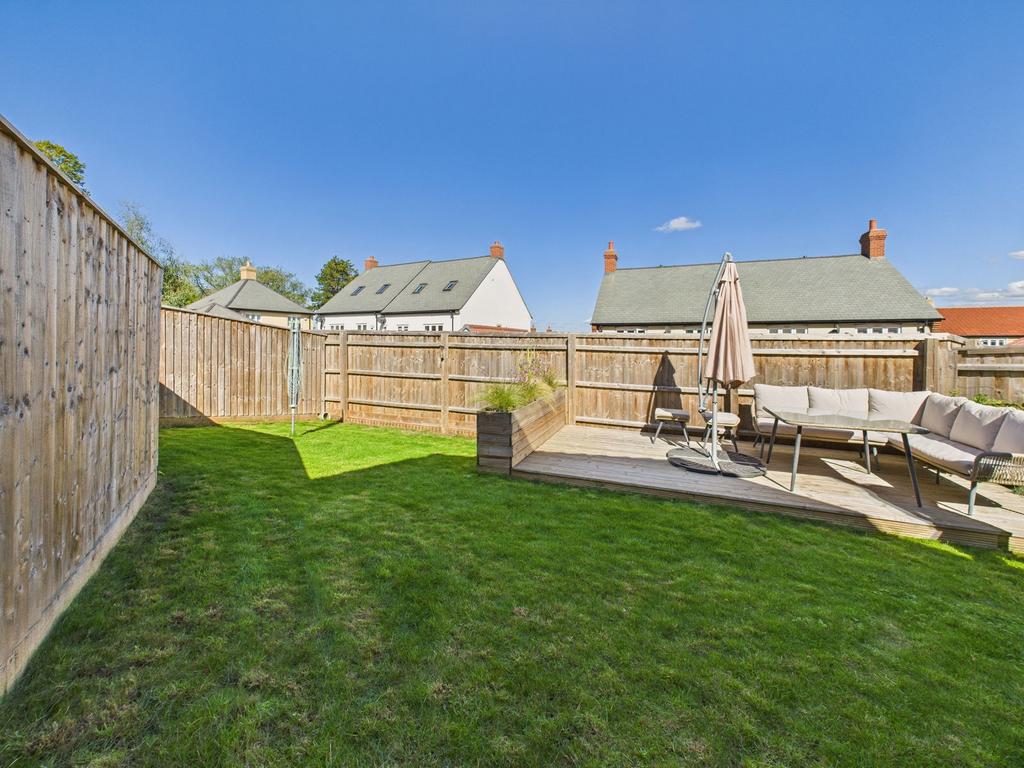 Externally, the rear garden has been thoughtfully landscaped, with a raised patio, decked seating area, and a large lawn—ideal for families and entertaining alike.