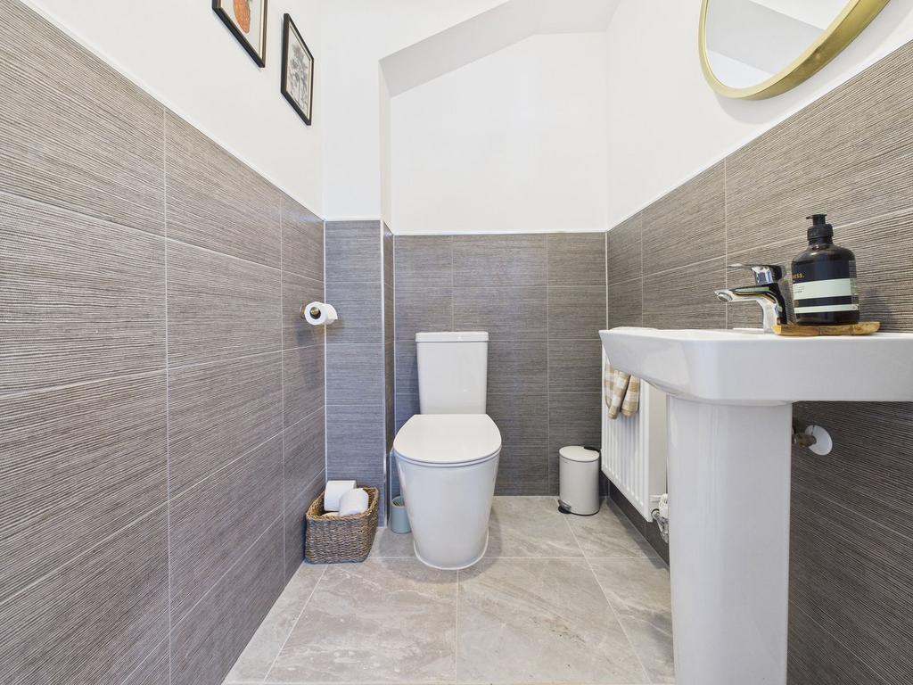 The ground floor offers a welcoming hallway, cloakroom/WC, an impressive open-plan living / kitchen / dining room. The kitchen is fully equipped with integrated fridge freezer, double oven, gas hob, extractor, washing machine and dishwasher. Dual aspect allowing an abundance of natural light to flood the property. A rear entrance hallway provides further convenience and access to the garden.