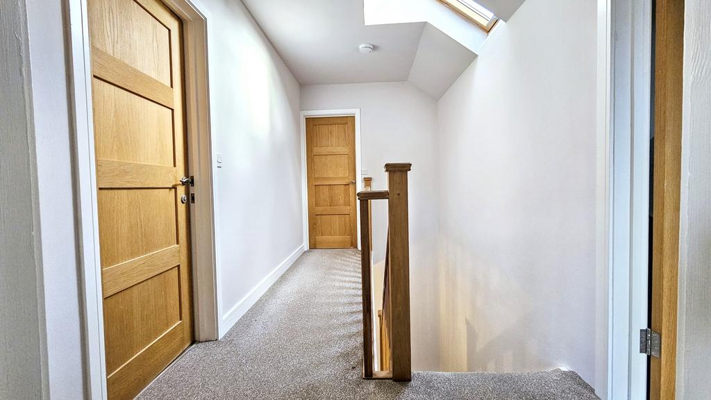 First FLOOR LANDING with fitted carpet, skylight window, two power points, and ceiling hatch.