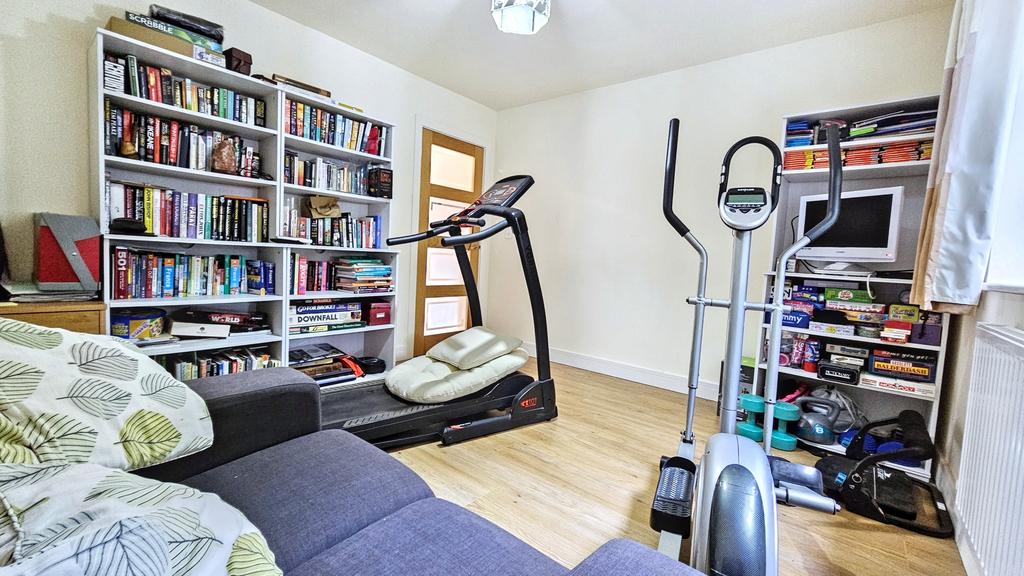SITTING ROOM (4.5m x 4.3m approx)(14'7" x 14'1" approx) with wood effect laminate floor, three windows, TV aerial point, radiator, six power points, telephone point, glazed panelled doors to reception hall, and kitchen.