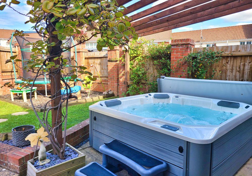 The property is approached via an open frontage with block-effect hardstanding providing off-road parking, access to a useful covered storage area, and the remainder of the garage with up-and-over door. A wooden side gate offers access to the rear garden, while a storm porch and recently refitted front door lead into the welcoming entrance hall.