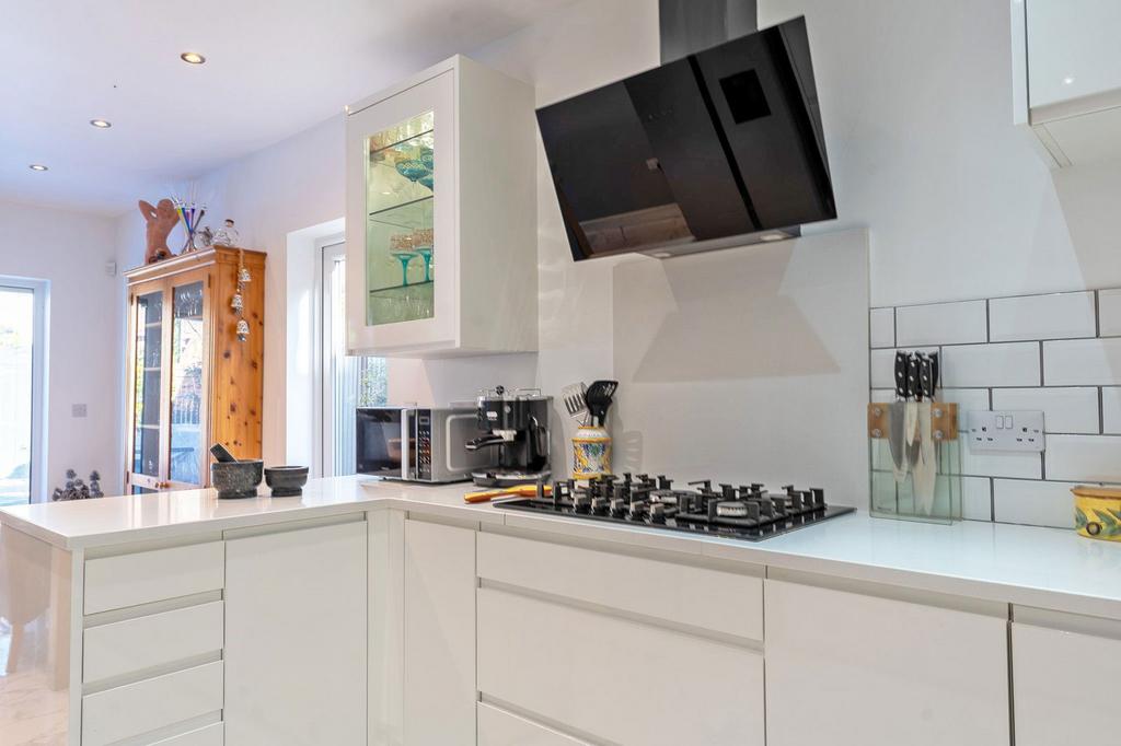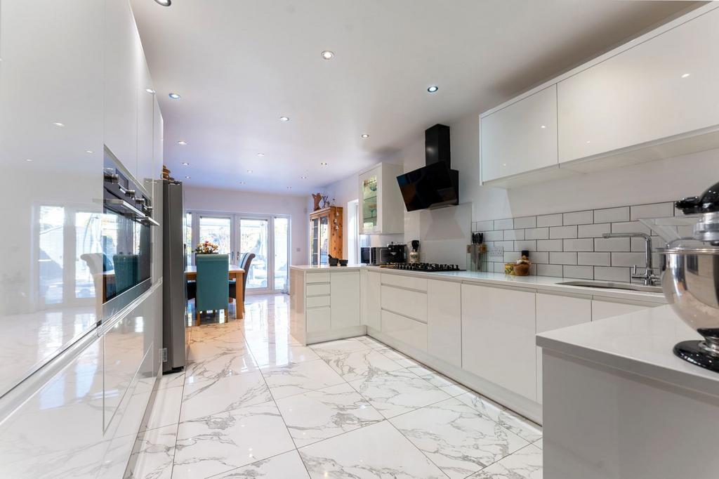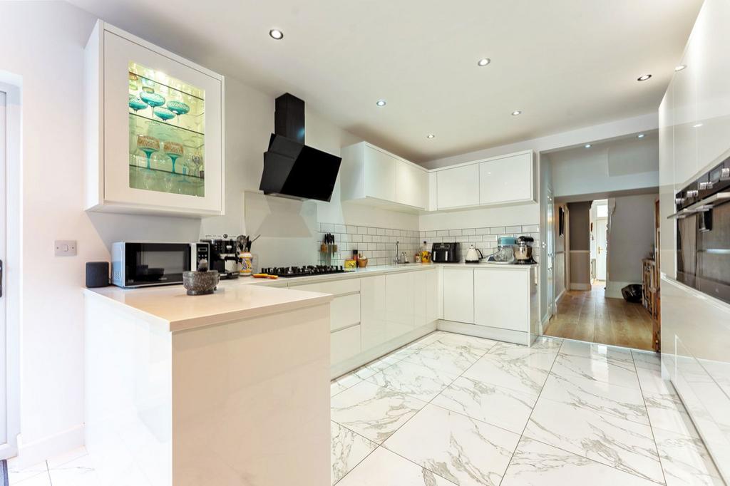 The heart of the home is the impressive, recently refitted 25ft kitchen/diner. Meticulously designed, it blends sleek white gloss cabinets, quartz worktops and premium integrated appliances, all set atop porcelain floor tiles. From family meals to dinner parties, this space caters to every occasion in style.