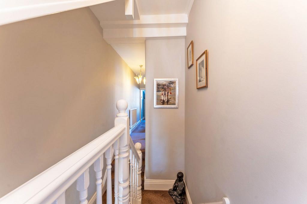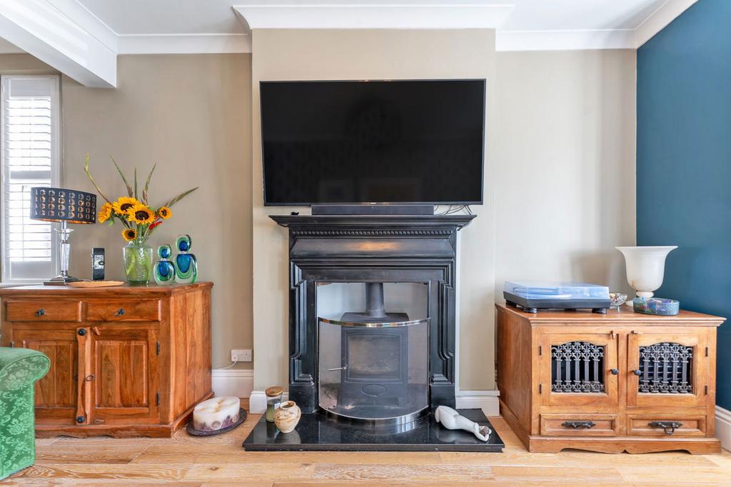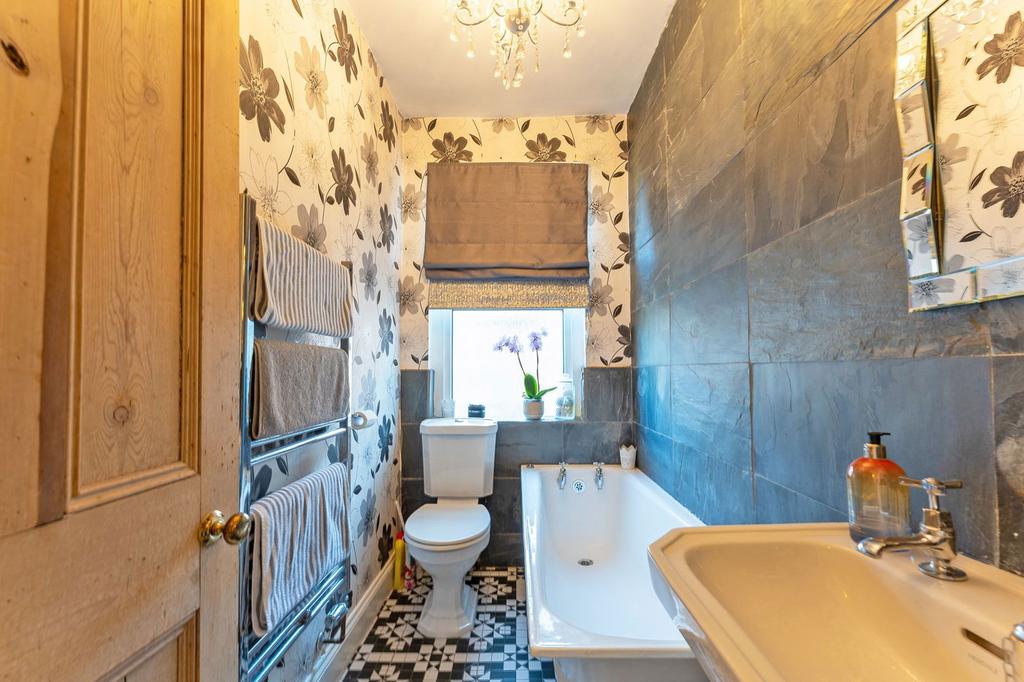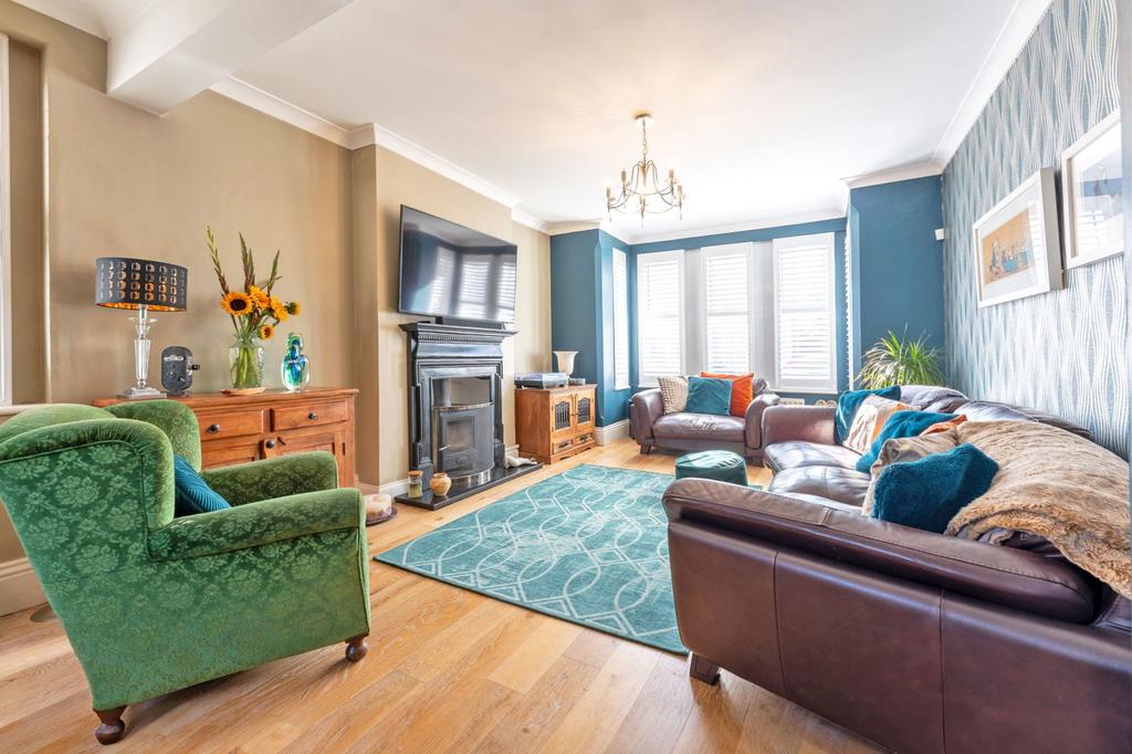 Step through the welcoming entrance hall, where classic details and natural light set the tone for the home. The ground floor is centred around a stunning 28ft lounge/diner, featuring rich oak flooring, elegant bay window, and a charming multi-fuel burner - perfect for relaxing or entertaining. Double doors open onto the private, low-maintenance rear garden, providing seamless indoor-outdoor living. A convenient downstairs WC is tucked beneath the stairs.