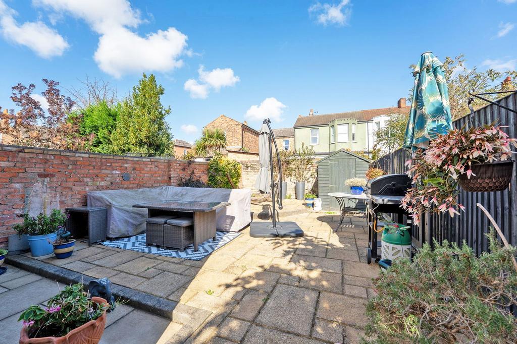 The rear garden is fully enclosed and part-walled for privacy, designed for easy care and outdoor enjoyment, with space to relax, entertain, or store essentials in the garden shed.