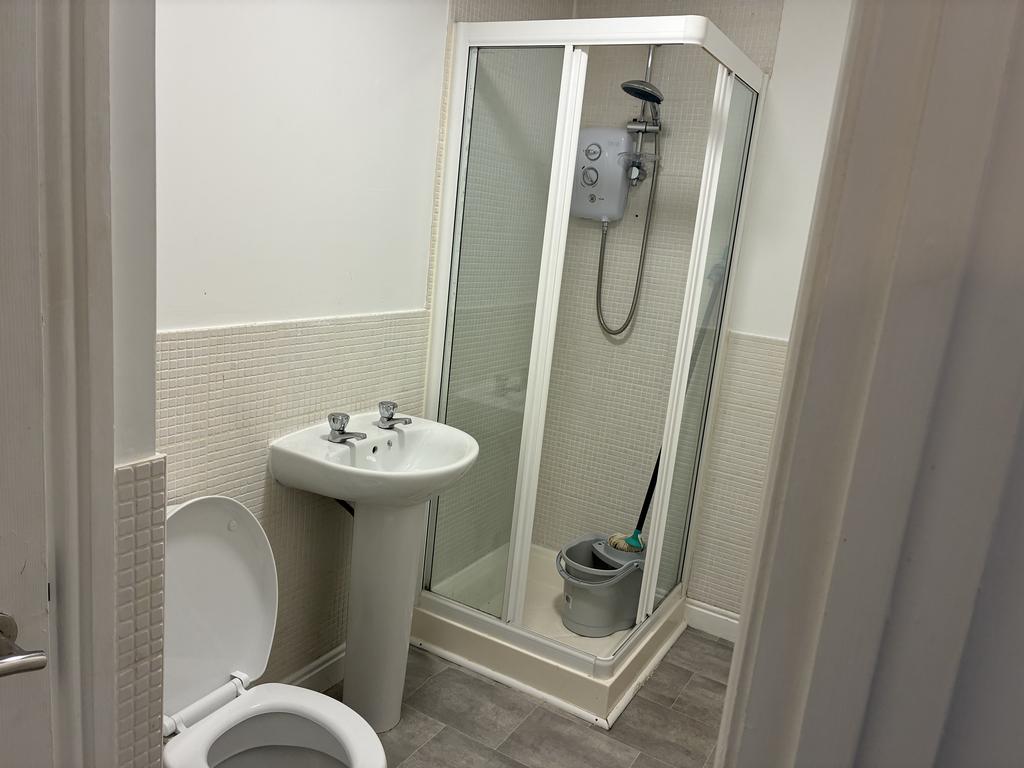 SHOWER ROOM & W.C Step in shower cubicle, pedestal wash and basin, W.C – low suite, half tiled walls, tiled floor, airing cupboard.