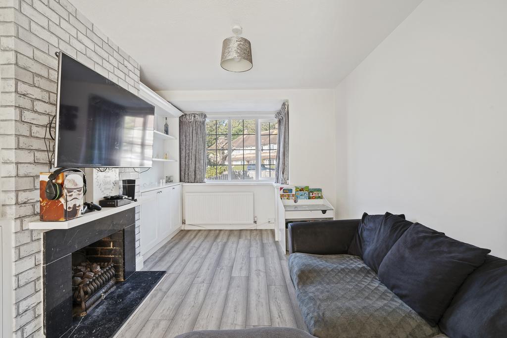 Double glazed window to the front. Laminate flooring. Skirting boards. Radiator. Fitted storage cupboards and shelving. Fireplace. Archway opening to the dining room.