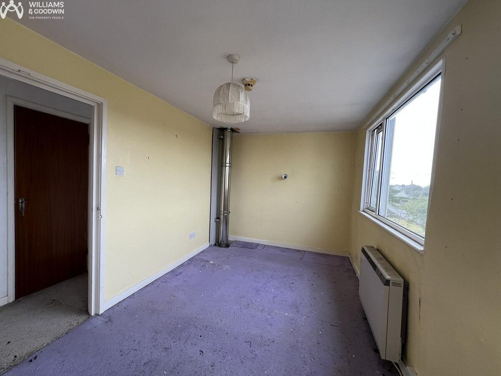 Two windows to front, electric storage heater: