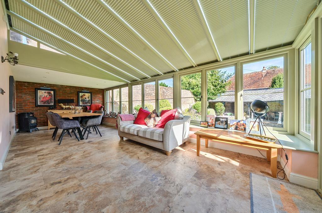 The formal Sitting Room flows naturally into a vaulted Conservatory, a striking light-filled space with garden views, perfectly suited for entertaining. The Snug provides a more intimate retreat, enhanced by exposed brickwork and oak panelling, while a spacious Family Room offers flexibility for day-to-day living.